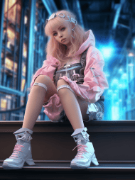 Anime style girl in sneakers